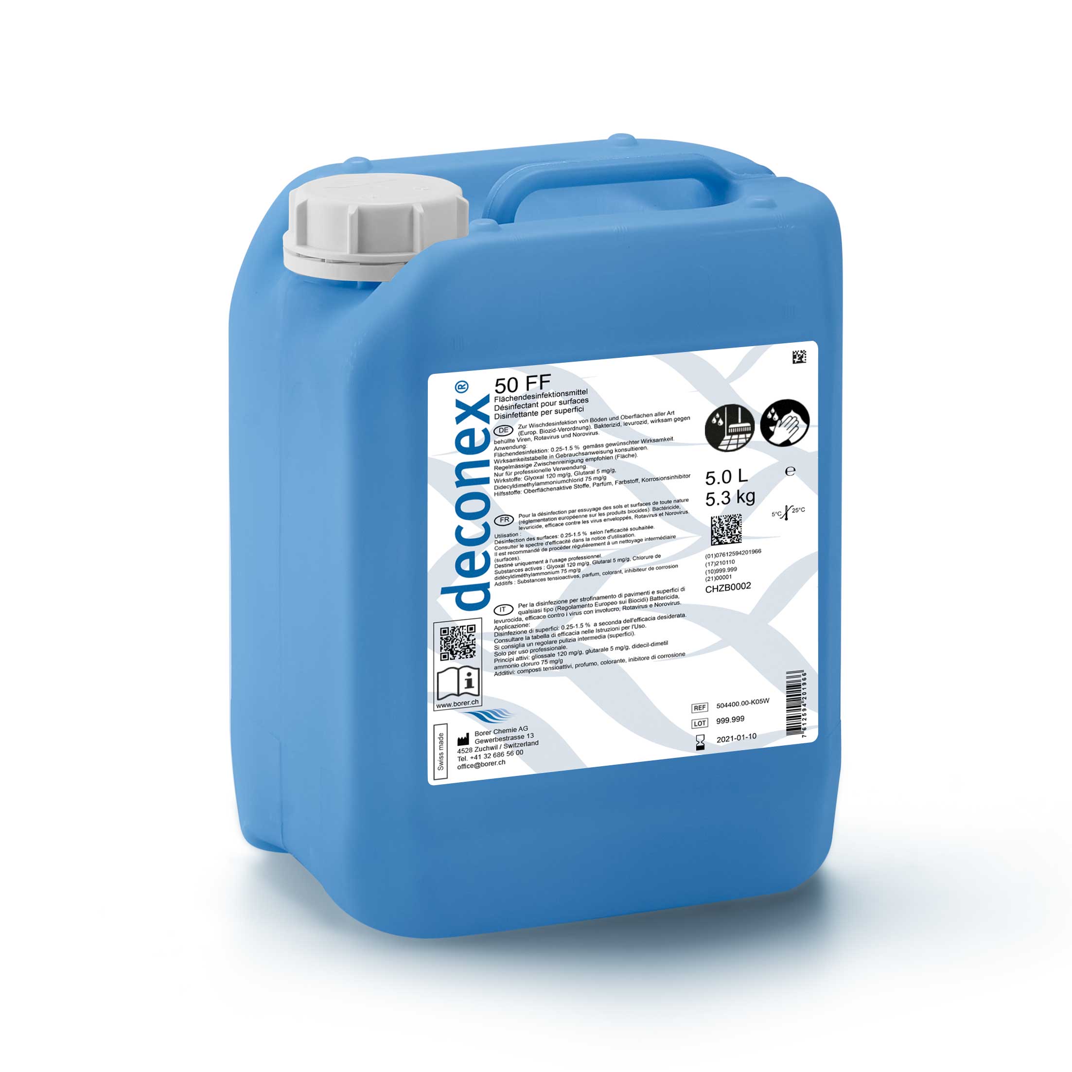 deconex® 50 FF wird zur Wisch-Desinfektion und gleichzeitigen Reinigung von Oberflächen aller Art, wie z.B. Fussböden, Wände, abwaschbare Oberflächen und Einrichtungsgegenstände eingesetzt.
